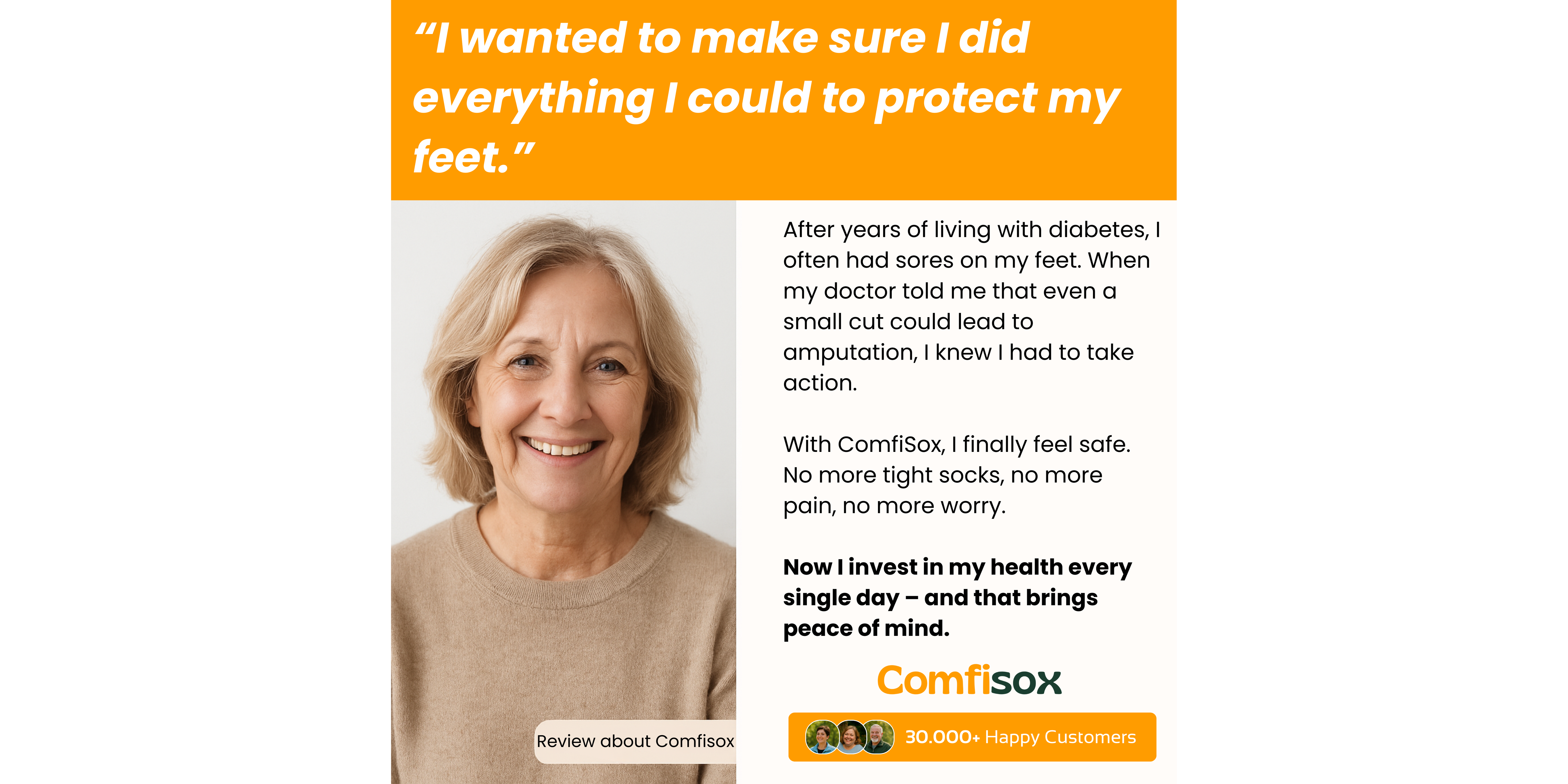 “With Comfisox, I finally walk without pain or swelling. They’re soft, don’t dig in, and stay up — they truly changed my life.” – Elisa (61)